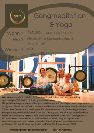 Zum letzten Mal für 2024 laden die Gong JaBiTa´s zur Gongmeditation mit Yoga ein. Eine entspannende Gongreise erwartet dich und ein leckeres selbst mitgebrachtes Buffett rundet den Tag ab.