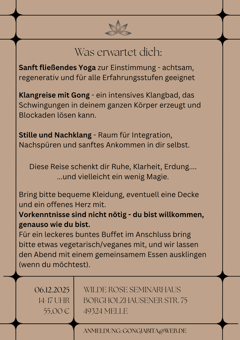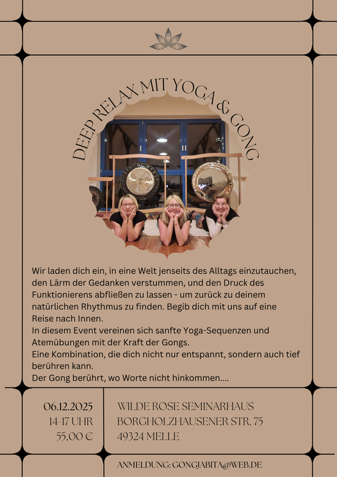 - dich vom Gong einhüllen und tragen lassen möchtest in tiefe regenerierende Entspannung